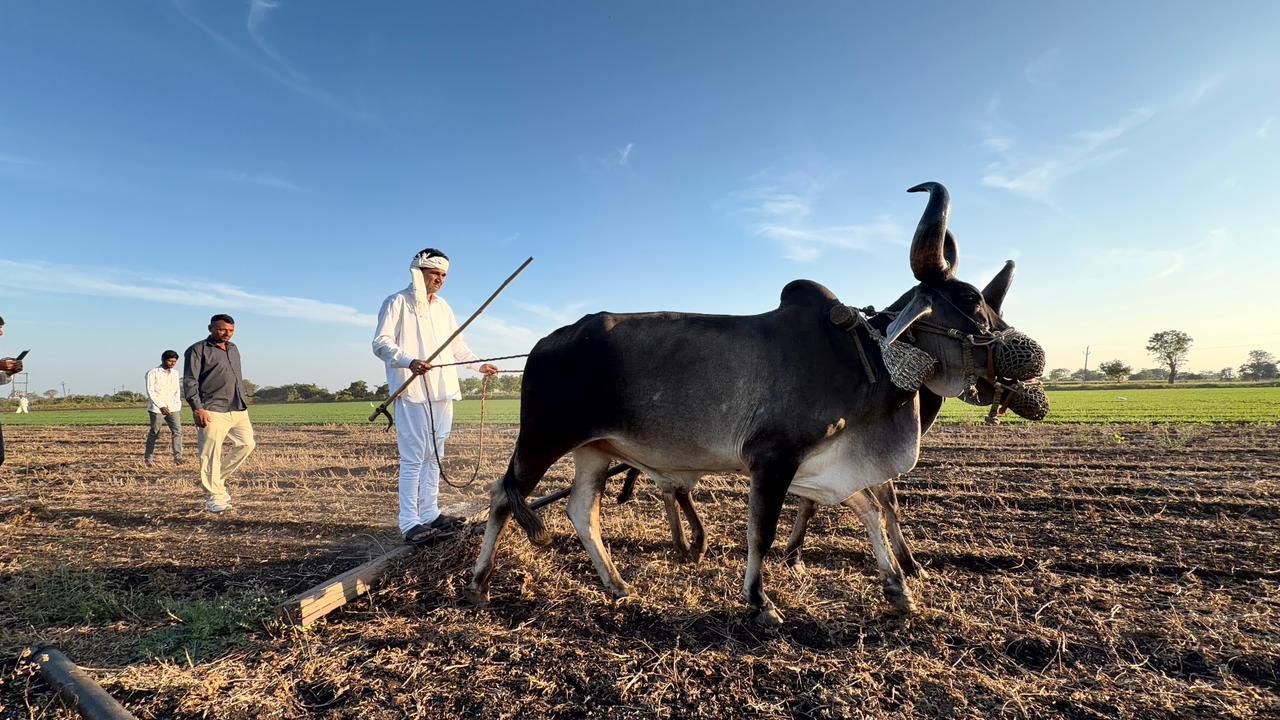 Esudan Garhvi, the Gujarat state president of the Aam Aadmi Party (AAP), celebrated National Farmers’ Day by ploughing fields and highlighting the struggles of farmers under the current BJP government.