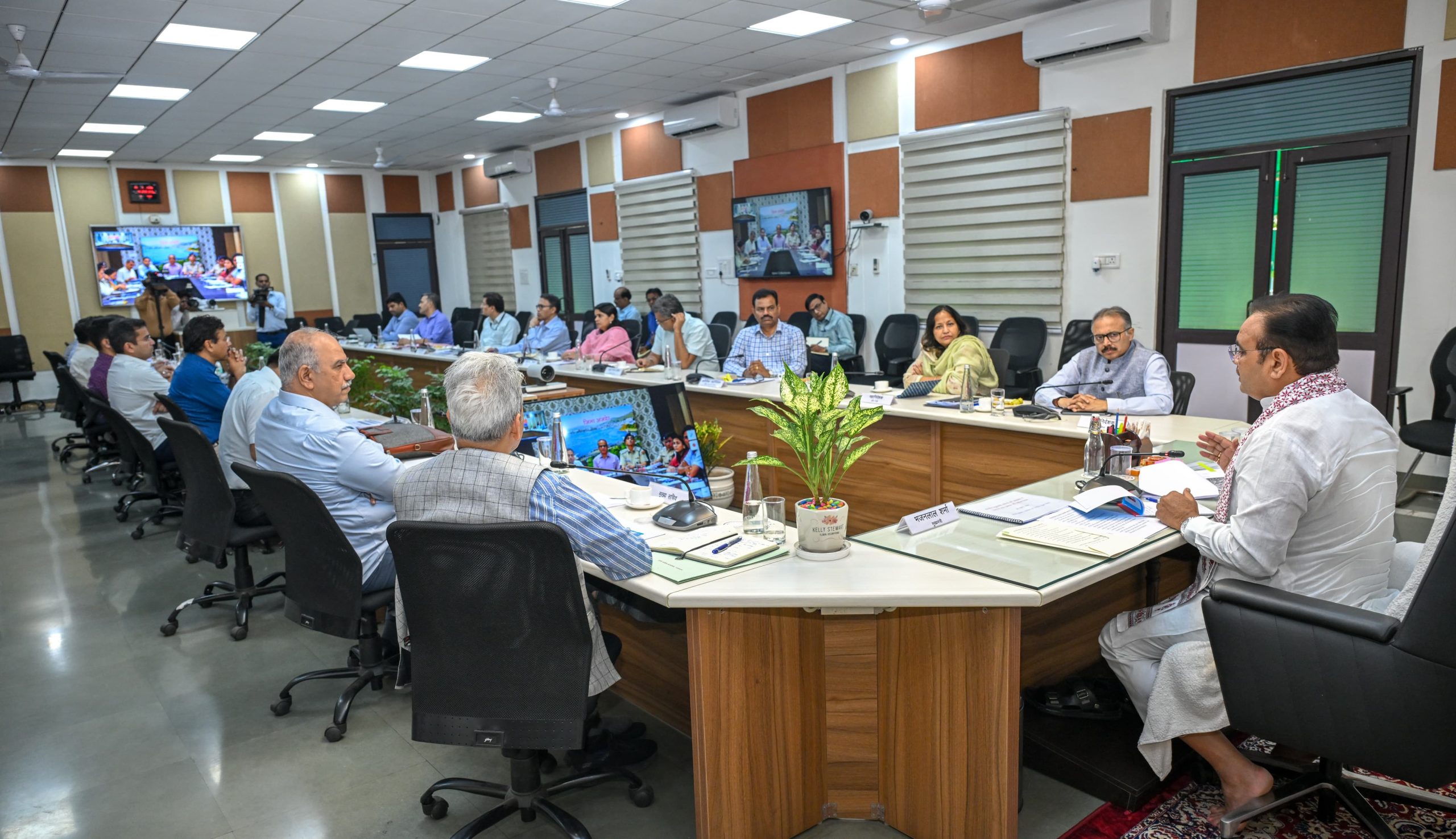 CM Bhajan Lal Sharma held a high level review meeting at Chief Minister’s residence on Sunday regarding the situation arising due to heavy rains in several districts of the state, especially waterlogging in urban areas and rise in water level of rivers and dams. He directed the administration to carry out rescue and relief operations in the affected areas with alertness and sensitivity, giving utmost priority to the safety of the citizens.