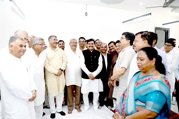 CM Mohan Yadav participated in the housewarming ceremony of the newly constructed wing of the Swadesh newspaper office located at 74 Bungalows. He extended congratulations and best wishes to the editorial board, journalists, and staff of the newspaper group.