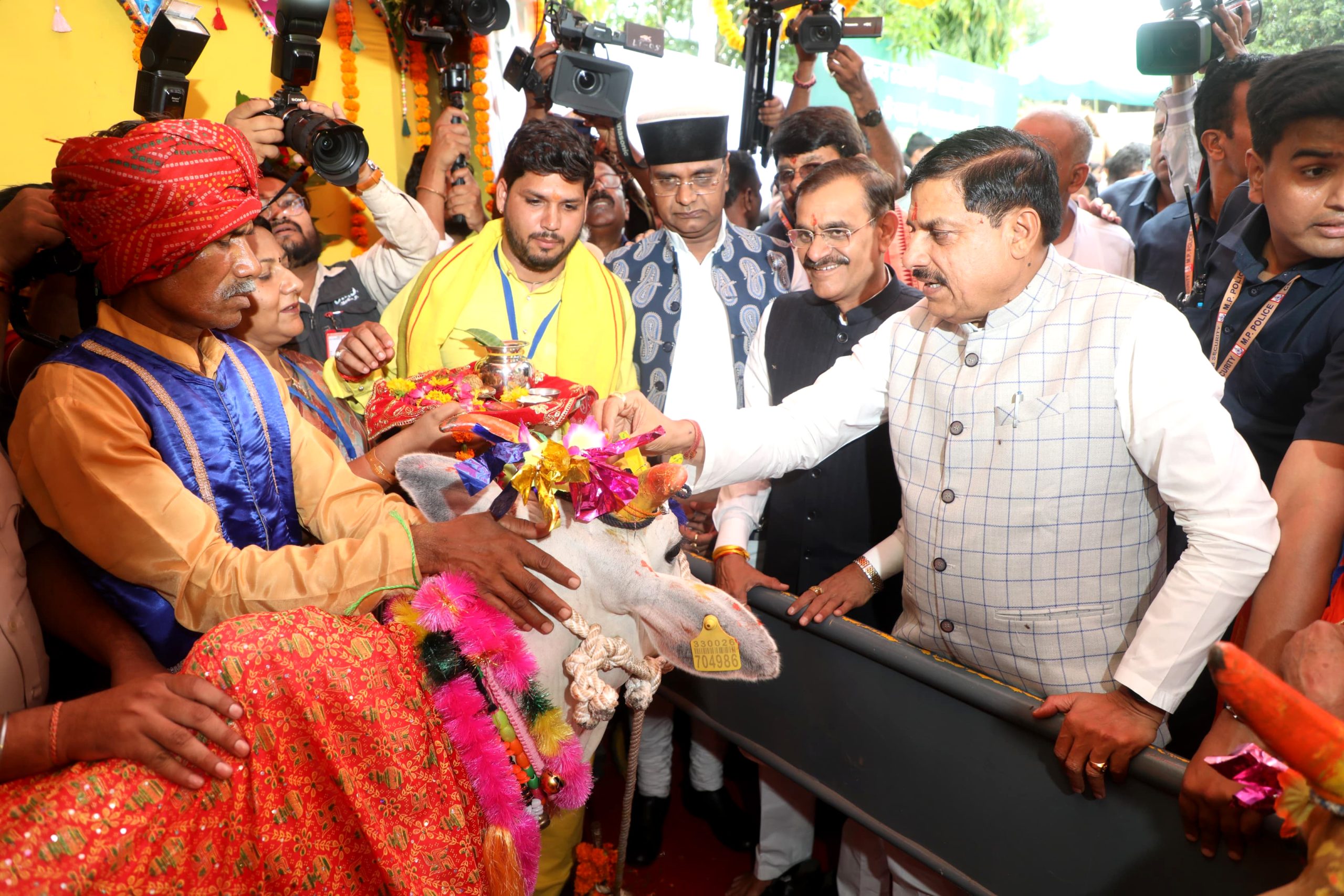 CM Mohan Yadav handed over grants to Gaushala operators and presented the Acharya Shri Vidyasagar Jeevdaya Gaoseva Samman Award for 2023-24 to institutions that have done remarkable work in cow service and Gaushala operation.