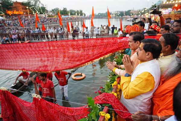 CM Mohan Yadav offered floral tributes at the Samadhi of Anant Shri Vibhushit 1008 Swami Sohan Das Ji Maharaj at Valmiki Dham and visited the temple. He paid his respects to the saints and interacted with devotees participating in the Yatra. On the occasion, the Chief Minister remarked that it was a very auspicious day and prayed to Maa Kshipra for the success of the puja, archana, and Parikrama Yatra, seeking her blessings for all. He also extended his heartfelt greetings to everyone on Ganga Dussehra and World Environment Day.