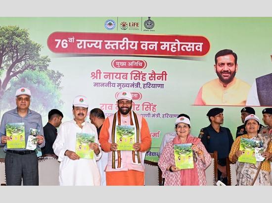 Haryana CM Nayab Singh Saini has called upon citizens to actively participate in environmental protection by planting trees, with the goal of ensuring a greener and more sustainable future. Addressing a state-level Van Mahotsav in Morni (Panchkula), he announced the State Government’s ambitious target of planting 2.10 crore saplings this year. He also urged every family to plant at least one tree during the monsoon season.