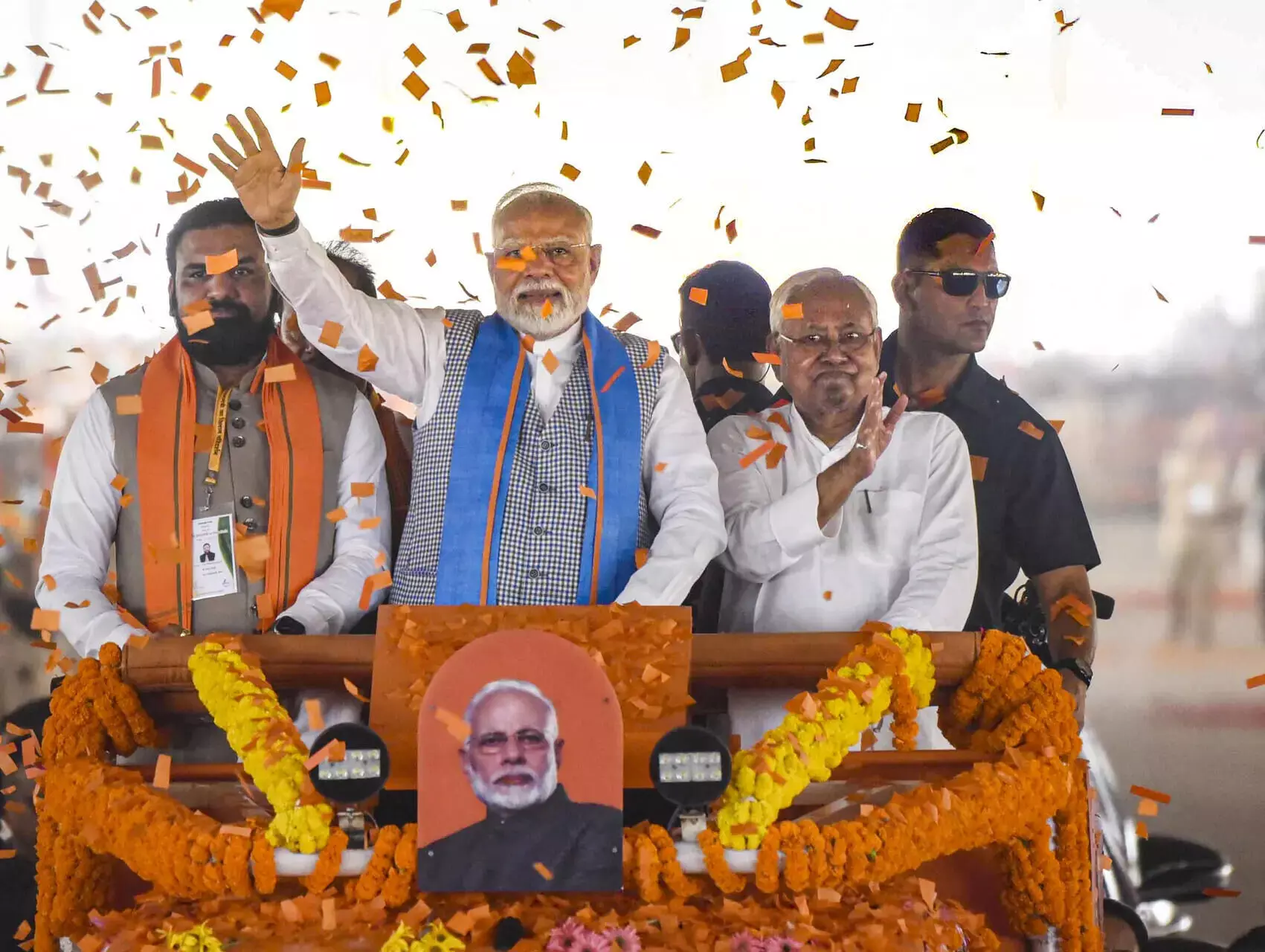 In his address,CM Nitish Kumar said that when the NDA government was formed in 2005, the JDU and BJP together laid the foundation for the development of Bihar. He said the condition of Bihar was bad during the time of previous governments, but his government paid special attention to improving law and order, women empowerment, education, health and infrastructure. 50% reservation for women in Panchayats and Municipal Bodies, electricity, water, toilets and roads to every household.