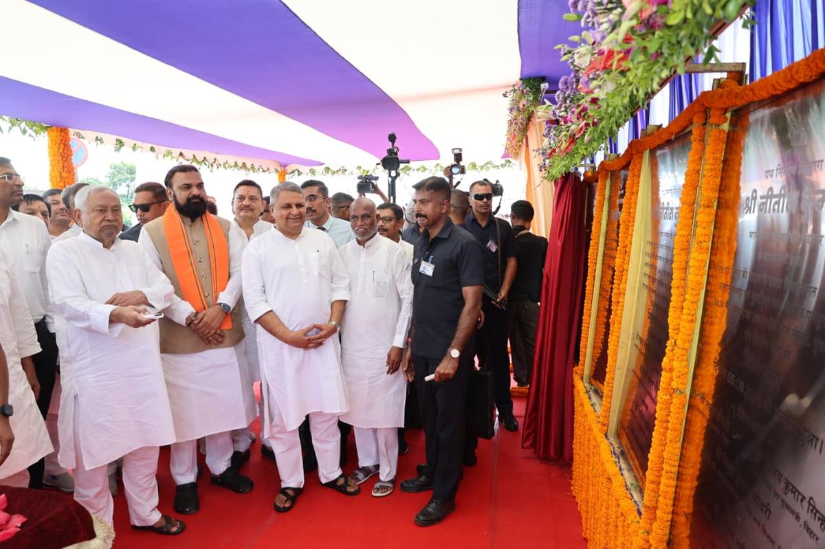 CM Nitish went to Didarganj and Barh and laid the foundation stone of various schemes through remote unveiling. This includes 4-laning of State Highway No. 106- Didarganj-Fatuha-Bakhtiyarpur-Karjan road at a cost of Rs.1065.53 crore, development of cremation ground and construction of electric crematorium near Umanath temple complex of Barh at a cost of Rs.9.5 crore and widening of Bakhtiyarpur-Barh-Mokama road from 45.70 km Athmalgola to Mokama Bata Chowk at a cost of Rs.249.88 crore. Besides, construction of bridge over Dhoba river between Hidayatpur and Manjhauli in Bakhtiyarpur at a cost of Rs 11.92 crore, beautification and development of civic amenities of Umanath temple complex of Barh at a cost of Rs 67.74 crore and construction of Barh Water Drainage at a cost of Rs 29.65 crore.