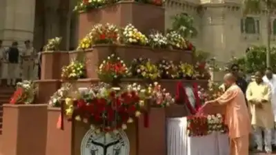 Uttar Pradesh CM Yogi Adityanath paid floral tributes in front of the statue of former Prime Minister and farmer’s well-wisher late Chaudhary Charan Singh ji on his death anniversary in the Vidhan Bhawan premises today.