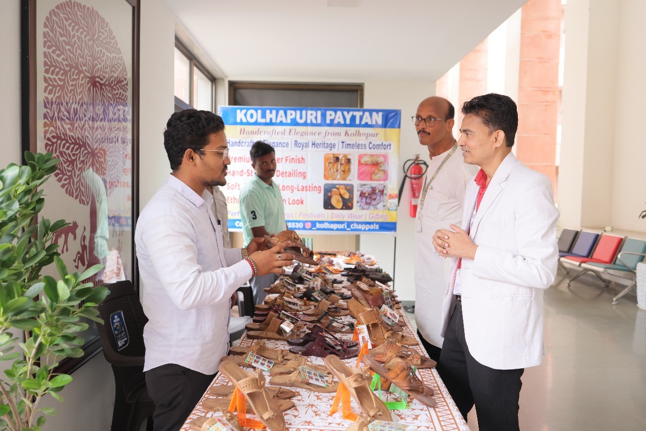The second day showcased India’s rich cultural heritage through traditional footwear, specifically Kolhapuri Chappals. The event brought artisans and students together to showcase a vibrant fashion walk featuring a diverse range of Kolhapuri chappals on the ramp. A workshop provided students with hands-on experience in crafting Kolhapuri footwear, while a dedicated, customized Kolhapuri manufacturing stall attracted many visitors.