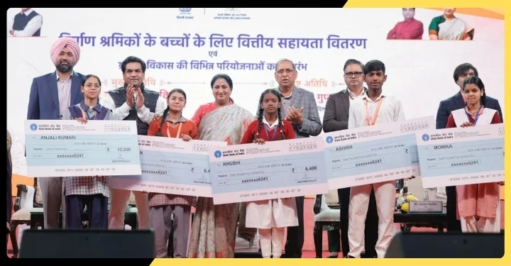 Delhi Chief Minister Rekha Gupta has announced several key initiatives aimed at empowering construction workers and accelerating rural development in the capital. In a grand public event held at Tyagraj Stadium, CM Gupta distributed educational assistance to 15,706 children of registered construction workers, transferring over ₹12.40 crore directly to their bank accounts.