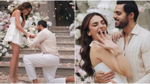 Nitibha Kaul reveals boyfriend’s face during dreamy proposal after a year of secrecy. Check out romantic photos and videos of the fairytale moment.