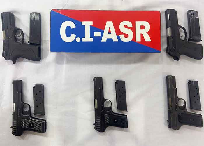 The arrested accused has been identified as Gurwinder Singh alias Guri, a native of Pakhowal, Ludhiana and presently residing at Shaheed Bhagat Singh Nagar, Ludhiana. Police teams have also recovered five pistols— including two .45 bore, two .30 bore, and one .32 bore from his possession, besides, impounding a white coloured Hyundai Verna car (PB91N0209), in which the accused was travelling.