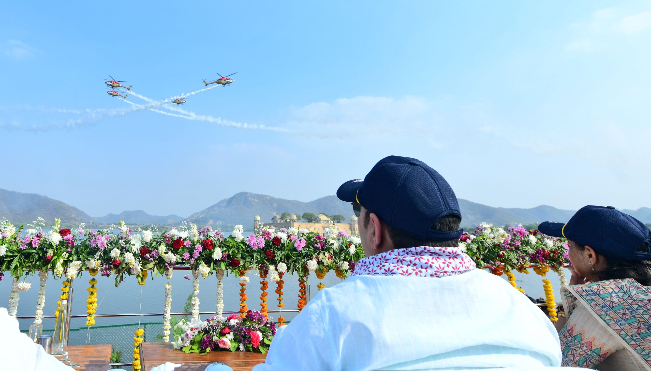 The Suryakiran Aerobatic Team and Sarang Helicopter Display Team mesmerized spectators with their precision flying and breathtaking formations over the historic Jal Mahal. From heart-shaped formations to the Dolphin Leap, Diamond, Inverted Wine Glass, and Bomb Burst, the aerial stunts left the crowd enthralled.
