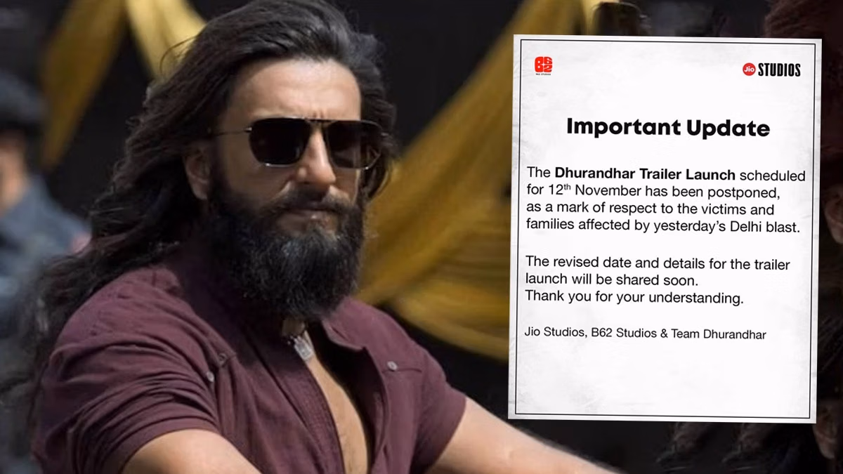 In a mark of respect to the victims of the recent Red Fort blast in Delhi, Bollywood star Ranveer Singh announced that the trailer launch of his upcoming action-thriller Dhurandhar has been postponed. The official statement was shared by Jio Studios and B62 Studios, confirming the delay and promising to announce the revised date soon.