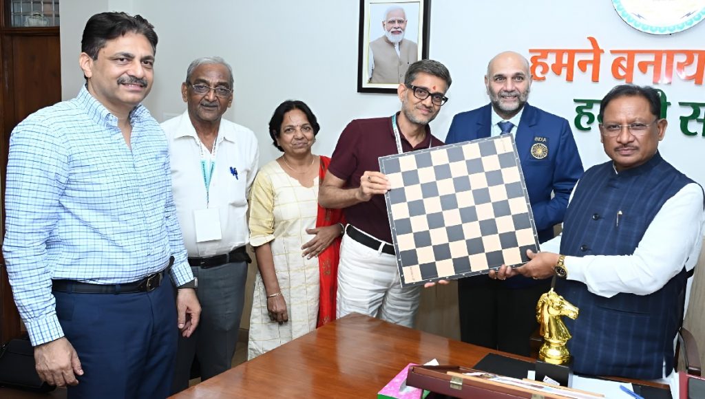 CM Vishnu Deo Sai was called upon yesterday at his Raipur residence by India’s international chess player and Grandmaster Pravin Mahadeo Thipsay. The Chief Minister lauded Mr. Thipsay’s exceptional talent and remarkable achievements in the field of chess, extending his appreciation to him.