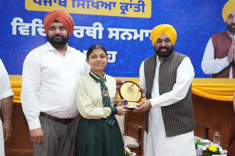Emotionally charged Parneet Kaur, School of Eminence Khamanon Kalan, Fatehgarh Sahib, said that her parents and teachers motivated her to compete in various competitive exams and due to the vision of the Chief Minister, she has stood overall fifth in the state and first in her district.