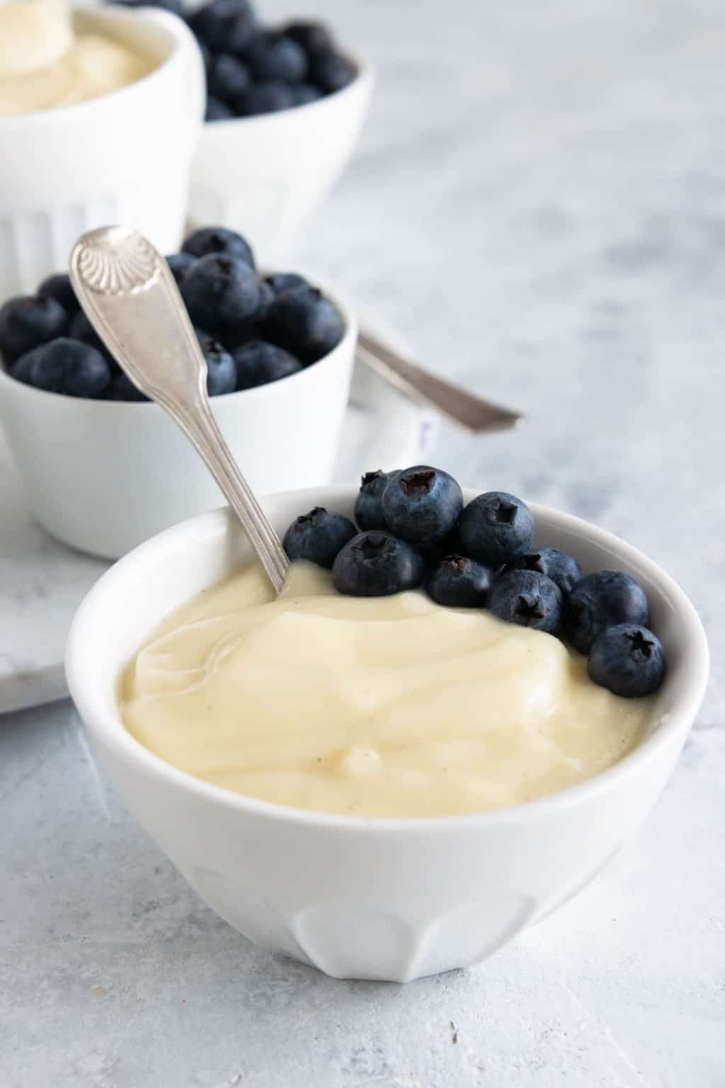 Ingredients: 2 cups whole milk 1/2 cup granulated sugar 1/4 cup cornstarch 1/4 teaspoon salt 4 large egg yolks 2 tablespoons unsalted butter 2 teaspoons vanilla extract