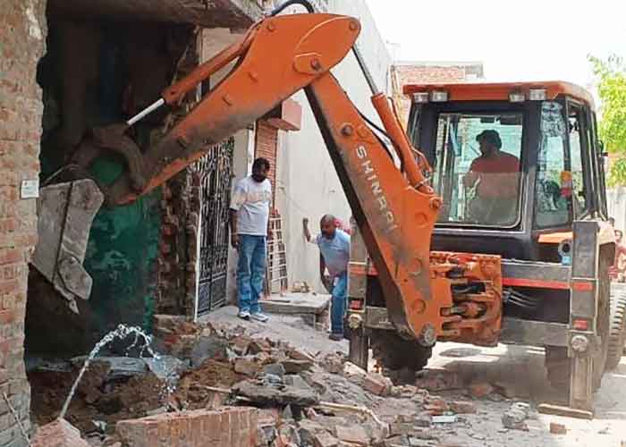 Today, under the supervision of SSP Shubham Aggarwal, the district police and administration demolished an illegal construction in the Master Colony of Mandi Gobindgarh, carried out by two female drug peddlers. This action sent a strong and clear message to individuals involved in the drug trade that the Punjab Government is fully committed to eliminating this social evil and that no drug trafficker will be spared.